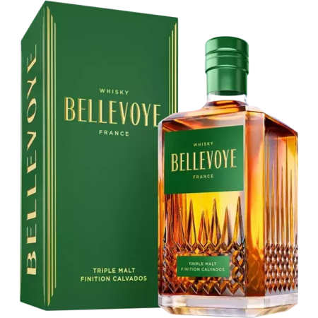Assemblage de trois whiskies single malt affinés en barriques de vieux Calvados. Légèrement tourbé.